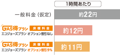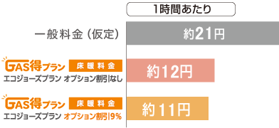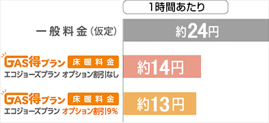 上記金額は燃料・原料費調整額を除く。原料費が高い場合は、原料費調整額により一般料金と比較してガス料金が高くなることがあります。