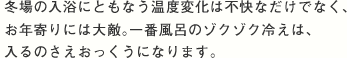 冬場の入浴にともなう温度変化は不快なだけでなく、ご高齢の方