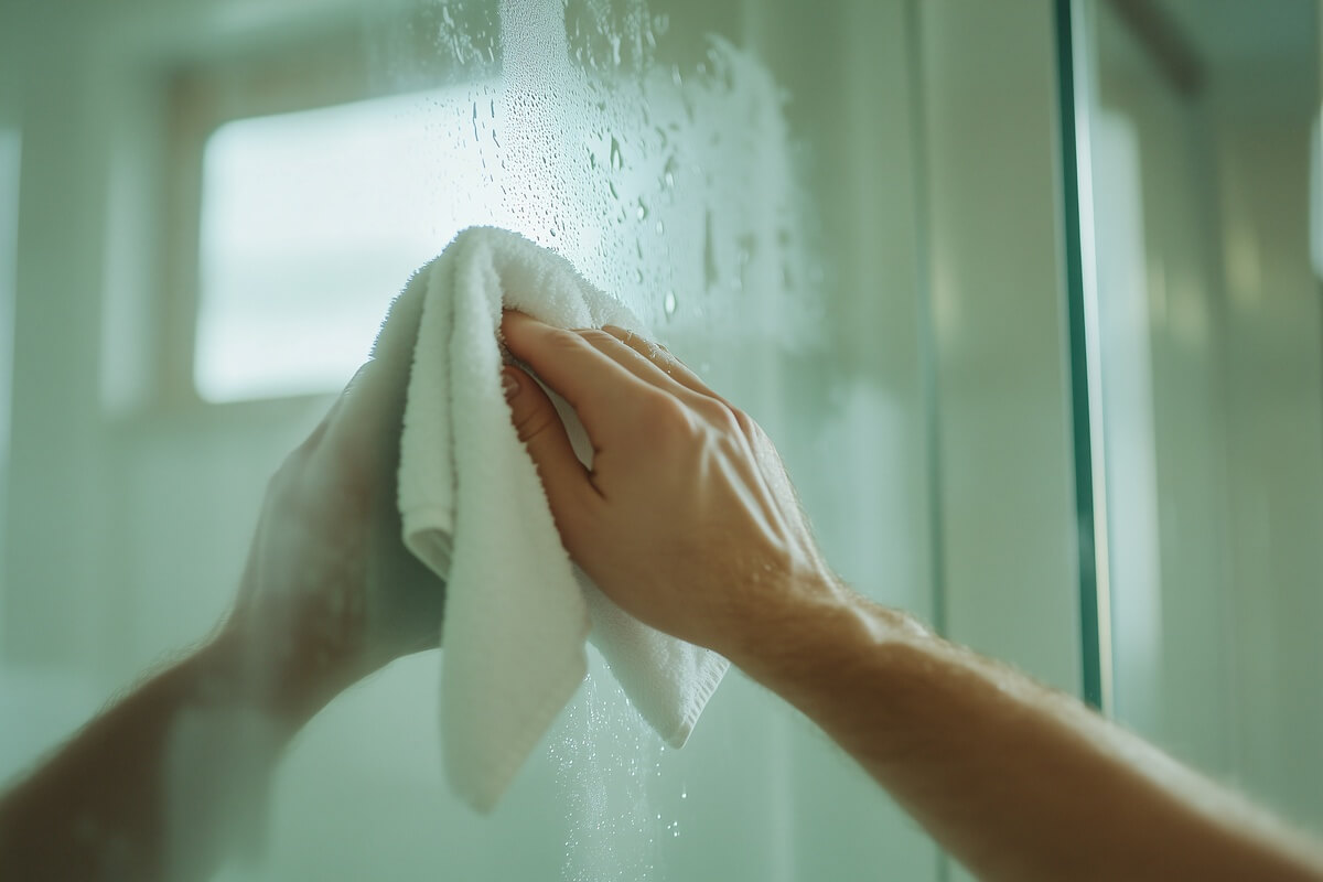 最後の入浴が終わったあとに水切りを習慣にすることで、翌朝には乾いた清潔な鏡で気持ちよく一日をはじめられます。