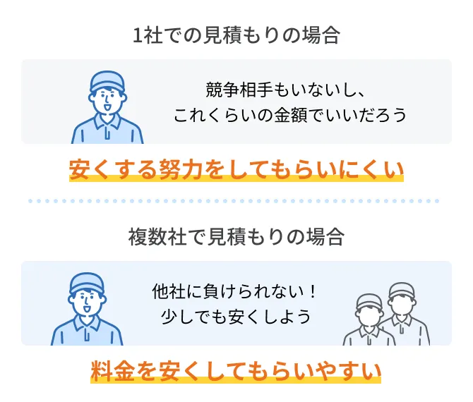 費用やサービスを比較するためには、相見積り(複数の業者から見積りを取ること)をおこないます。いくつかの引越し業者を比較し、より条件のいい業者を探してみましょう。