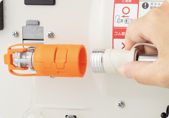 「ガスコード確認カバー」を装備。初回接続時の安全性にも配慮しました。