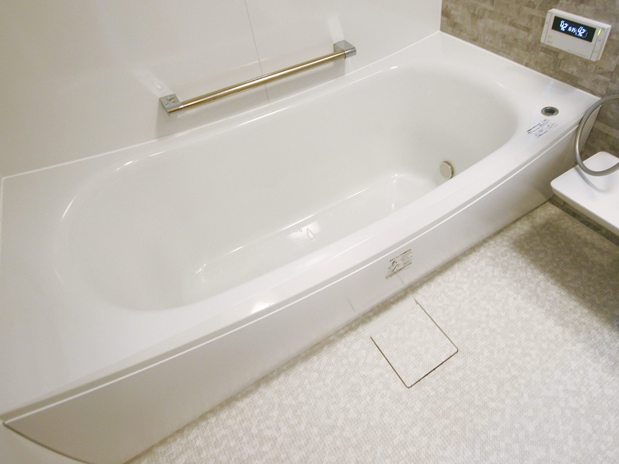 またぎやすく、ゆったりと入れる浅い浴槽になりました。