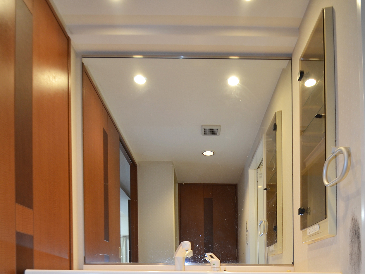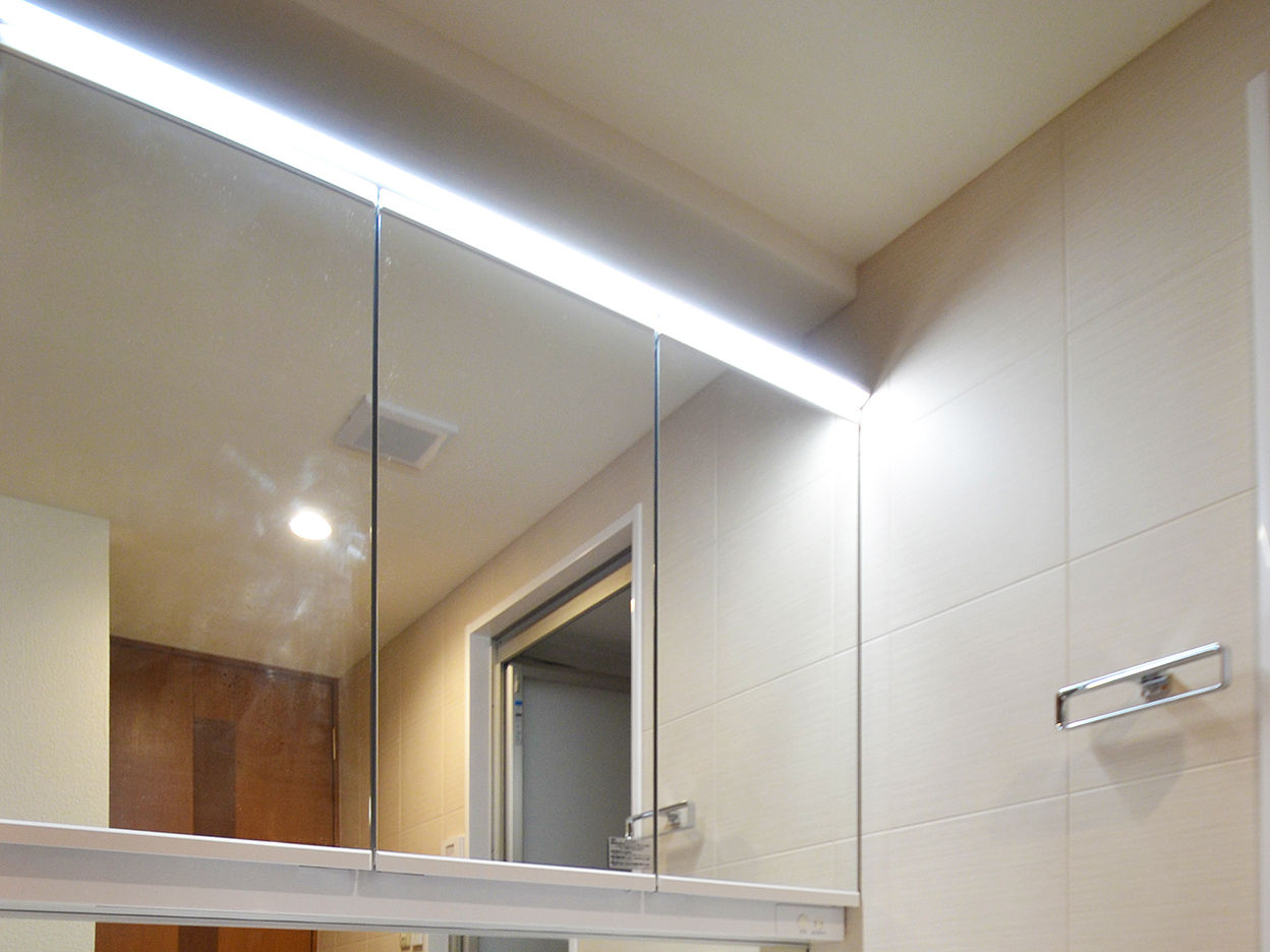 ・洗面化粧台は三面鏡で合わせ鏡も簡単にできます。