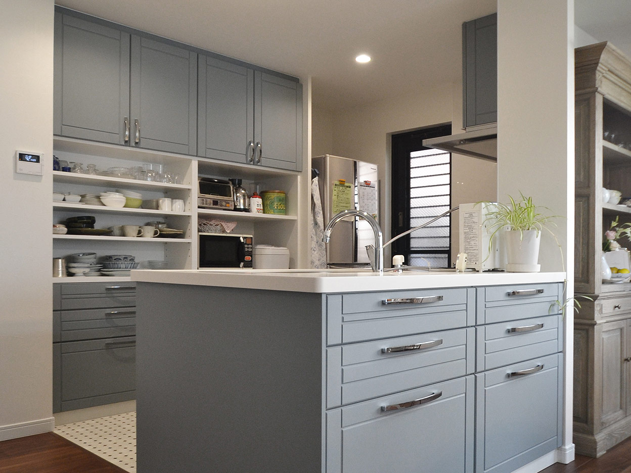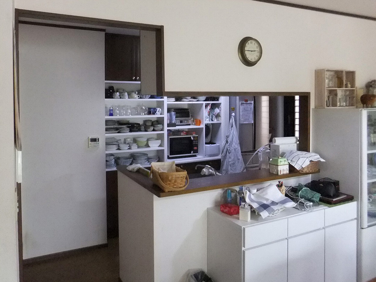 対面カウンターのあるキッチンでしたが、収納量でお悩みでした。