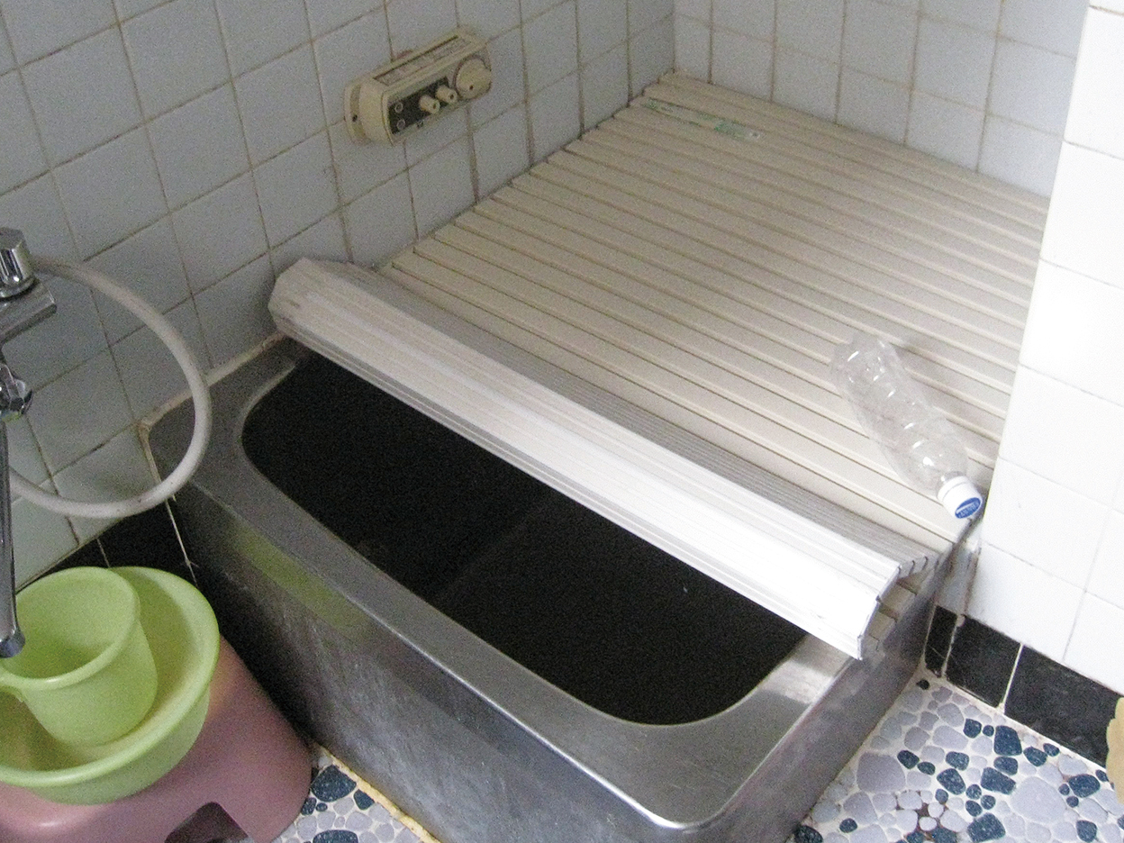冷たくてタイルのヒビ割れが目立つ古い浴室