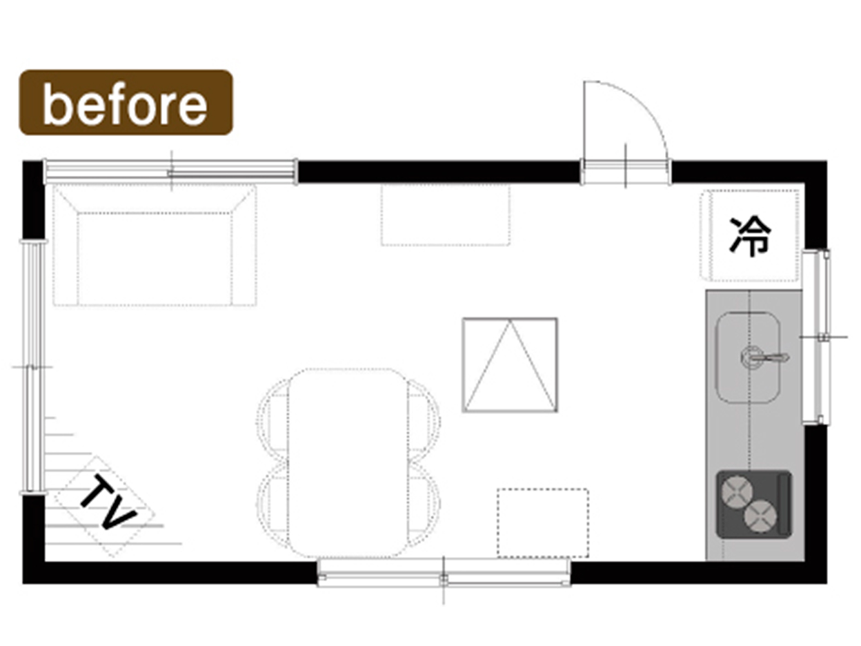 リフォーム前には家具の片づけなどをやっていただきました。足もとからじっくりあたたまる床暖房を設置して、冬場はとても快適です。