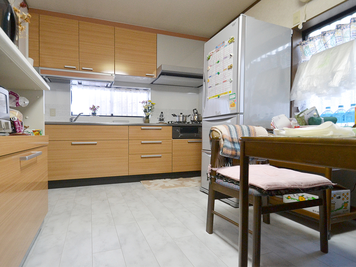 キッチンが、以前の幅よりも約1.4倍の広さになったので、作業スペースをしっかり確保。また、キッチンとダイニングには床暖房を設置。足もとからじんわりと、理想的に体をあたためられてとても快適に。