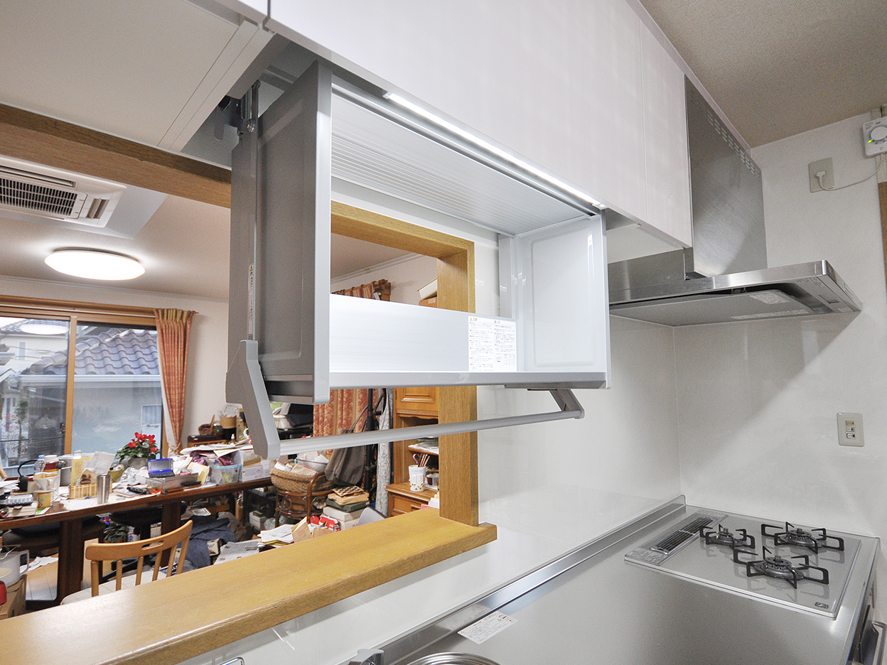 ハンドムーブは手軽に手動で降ろせ、吊戸棚スペースを有効活用できます。