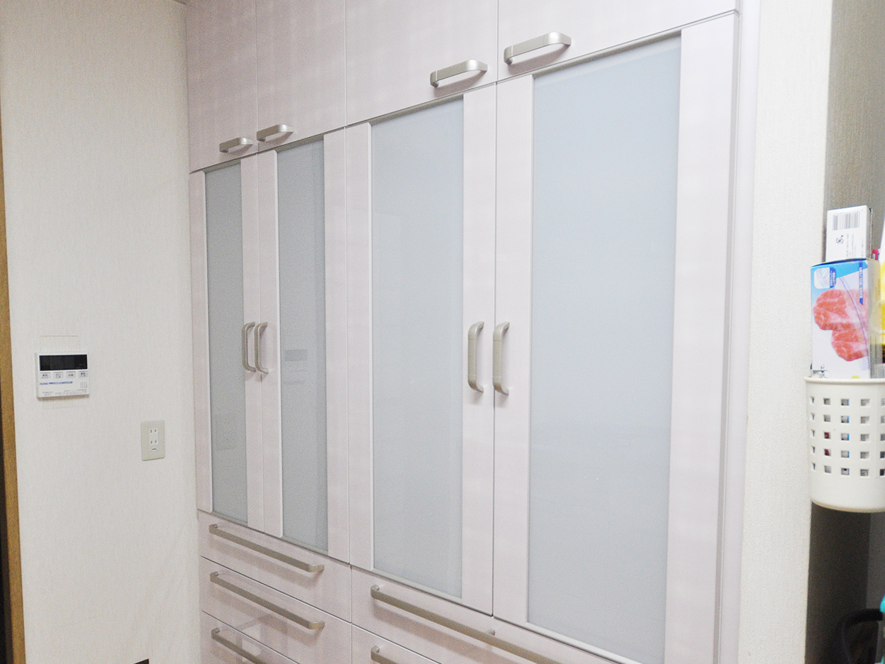 ・カップボードの中央部分がオープンでダイニングから食料品などが見えていたため、食料品を綺麗にストックしたいとお考えでした。