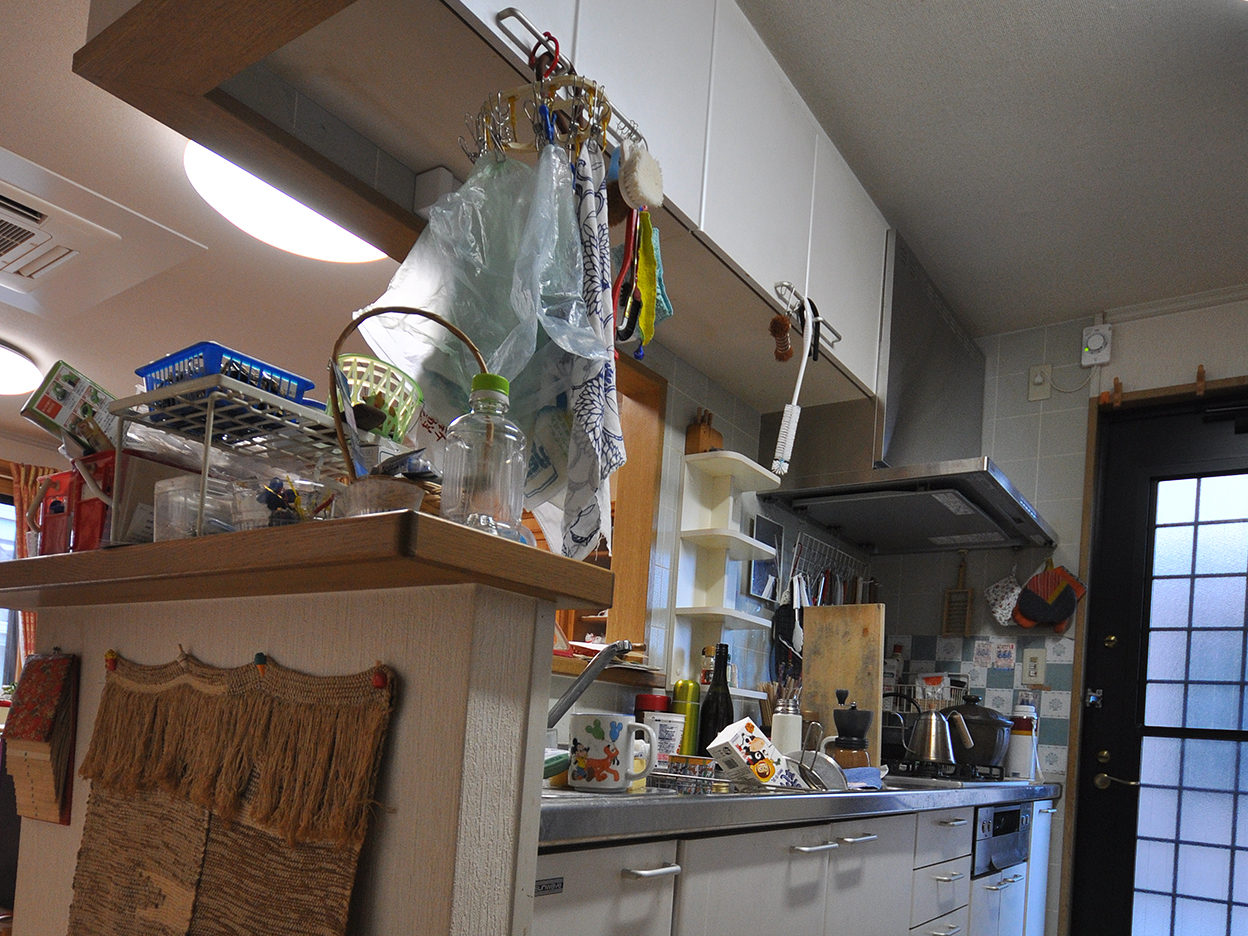 収納力の高いシステムキッチンを採用し、カウンター上に出しっぱなしになっていた調理器具も、リフォーム後はすべて収納できて、お料理がしやすくなりました! また、キッチンの通路幅が広くなり、開放感が生まれ、冷蔵庫から調理スペースへの移動もしやすくなりました。