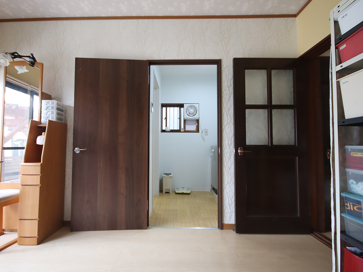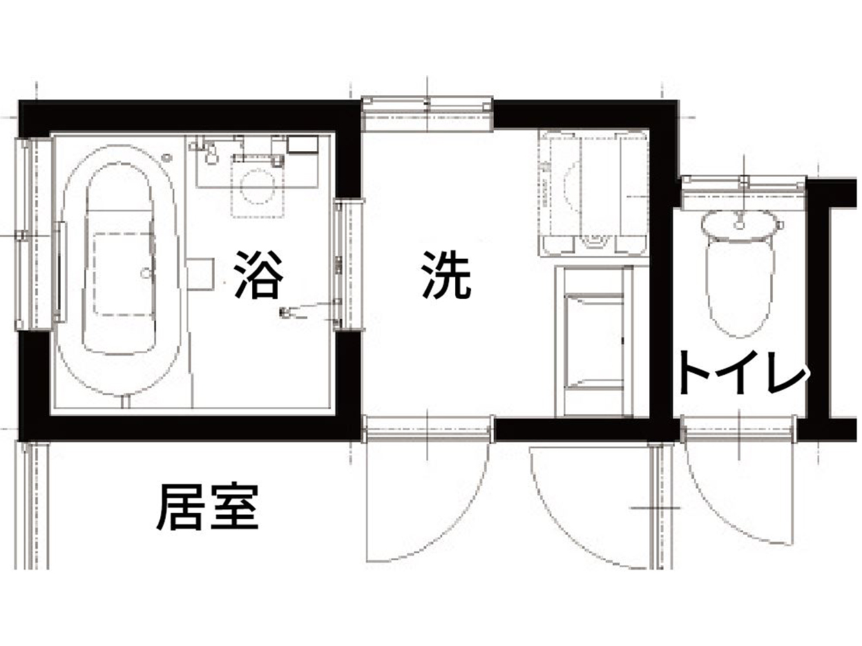 居室側の浴室から洗面室・トイレまでの壁が一直線になりました。