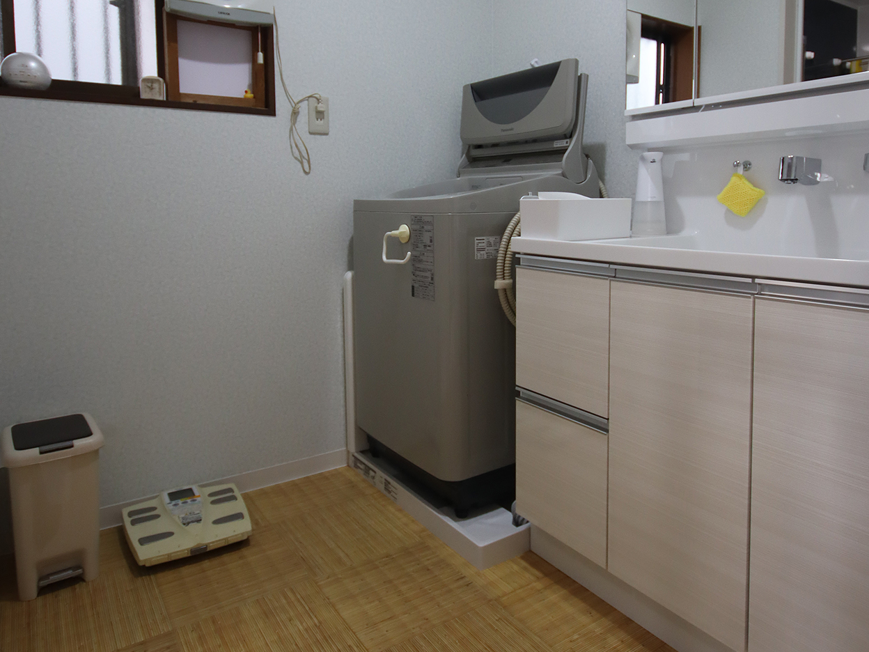 ・洗面室も広くなったので、洗顔をしている横でも洗濯ができるようになりました。また、すれ違いもスムーズにできます。