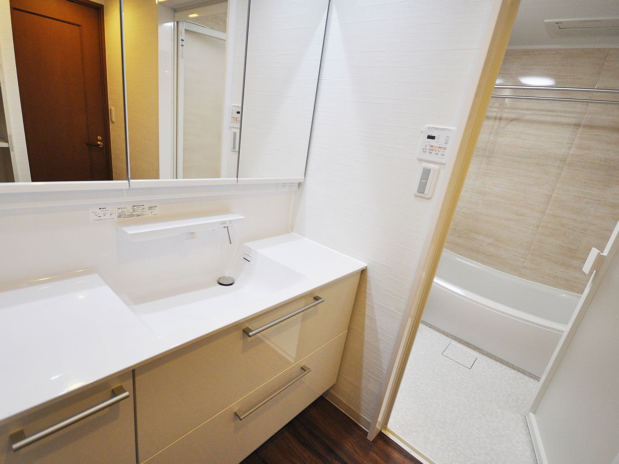 ホテルライクな浴室と洗面室、美しい水まわりで暮らし華やぐ