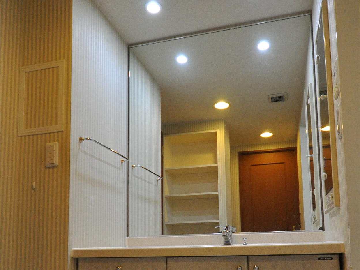 以前は浴室のタイル目地がすぐ汚れ、掃除するために入浴していると感じるほどでした。今は浴室全体が汚れにくく、簡単にきれいになり、本当にリラックスして入浴できています。洗面室は、以前はカウンター上に出していた物をすべてしまえるので広く感じます。物を置かないとホコリがたまりにくく、清潔なのも気持ちいいですね。