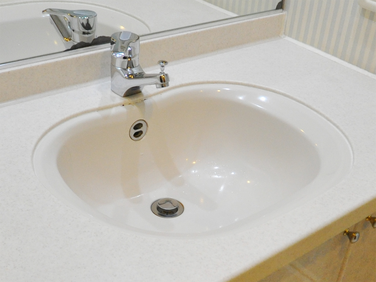 ・洗面化粧台は、ボウルのコーキングに頑固なカビが発生していました。