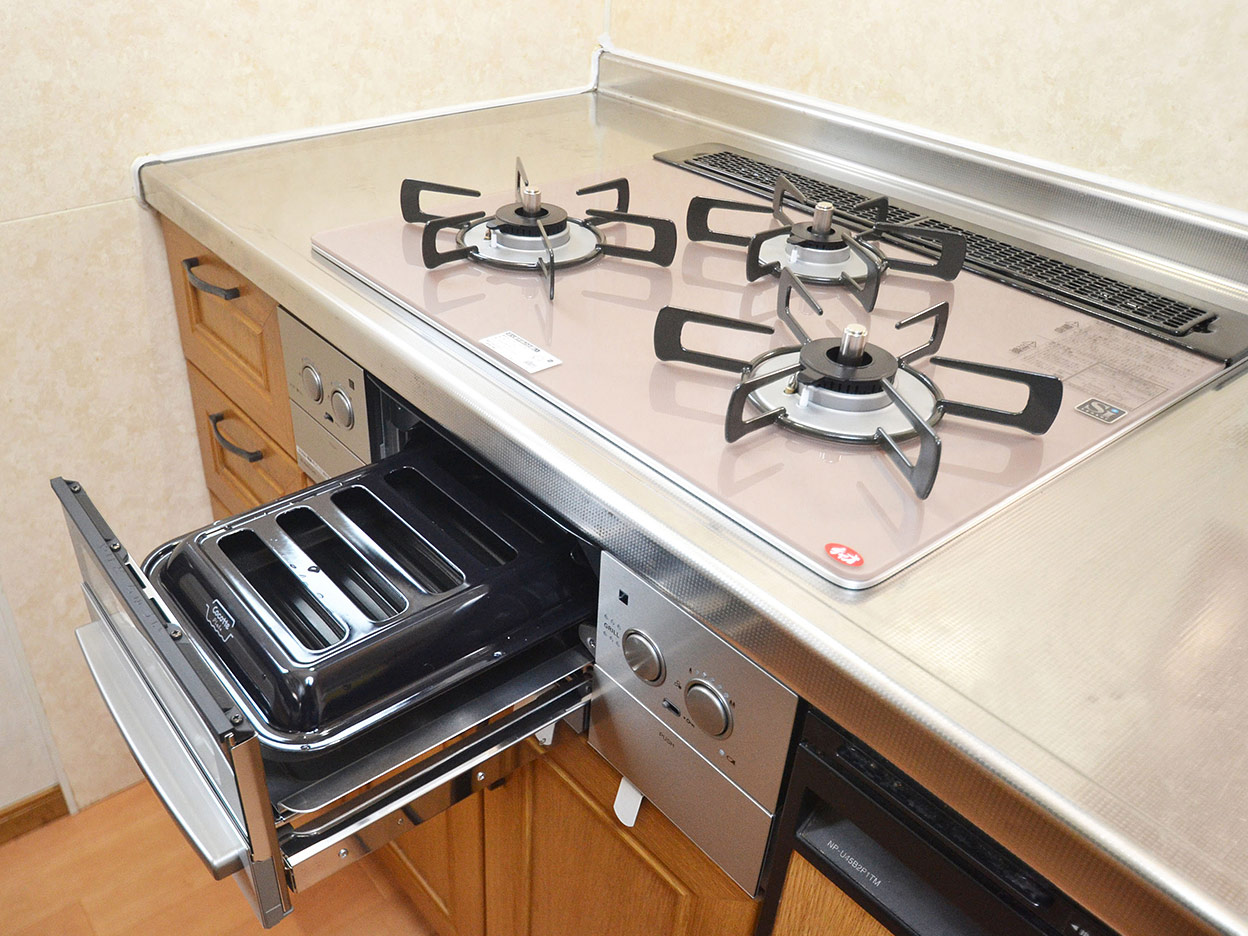 コンロとレンジフードを最新型にすることで、お手入れ簡単。自動消火機能などがついたコンロで、安全性も高まります。