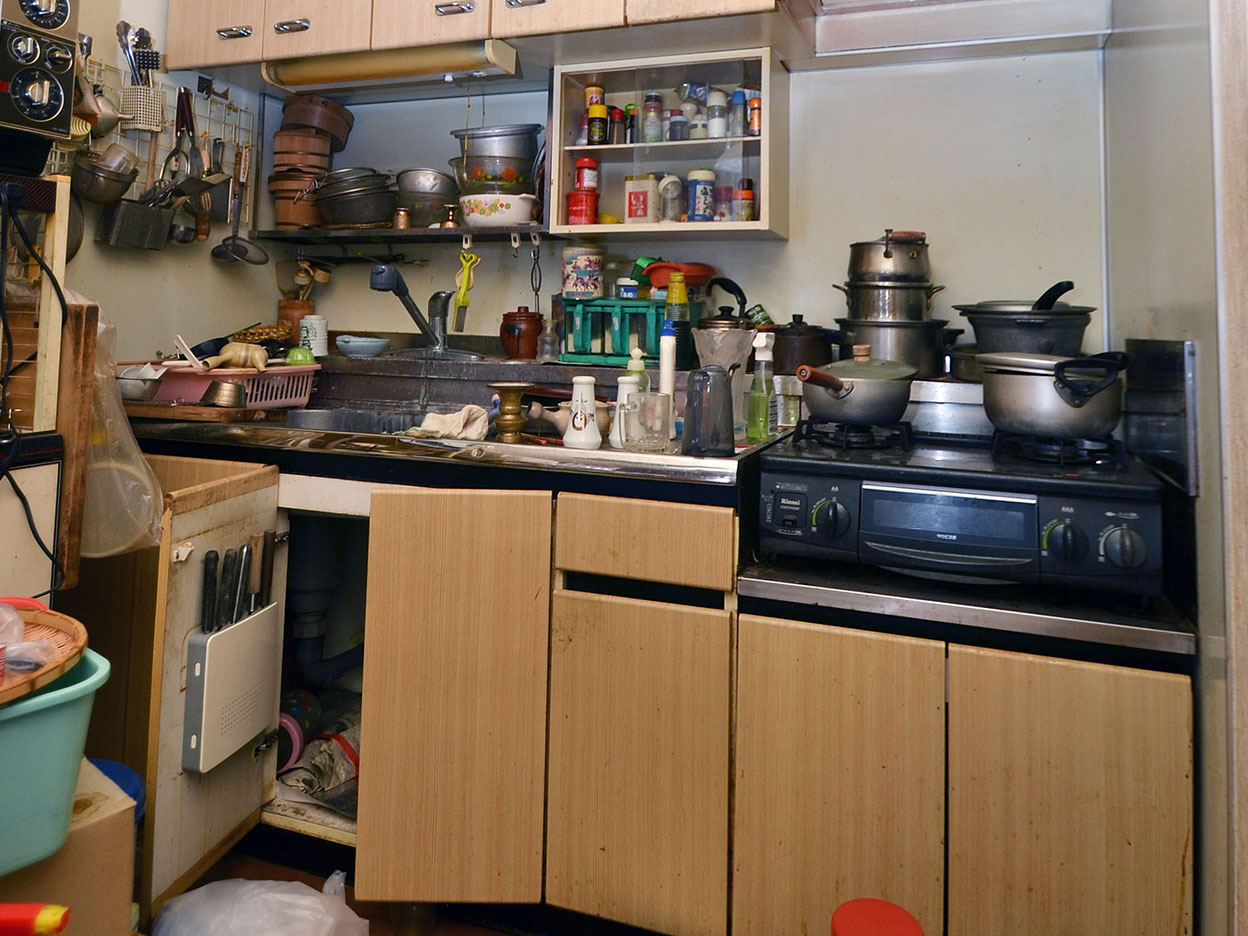不用品を分別中のキッチン