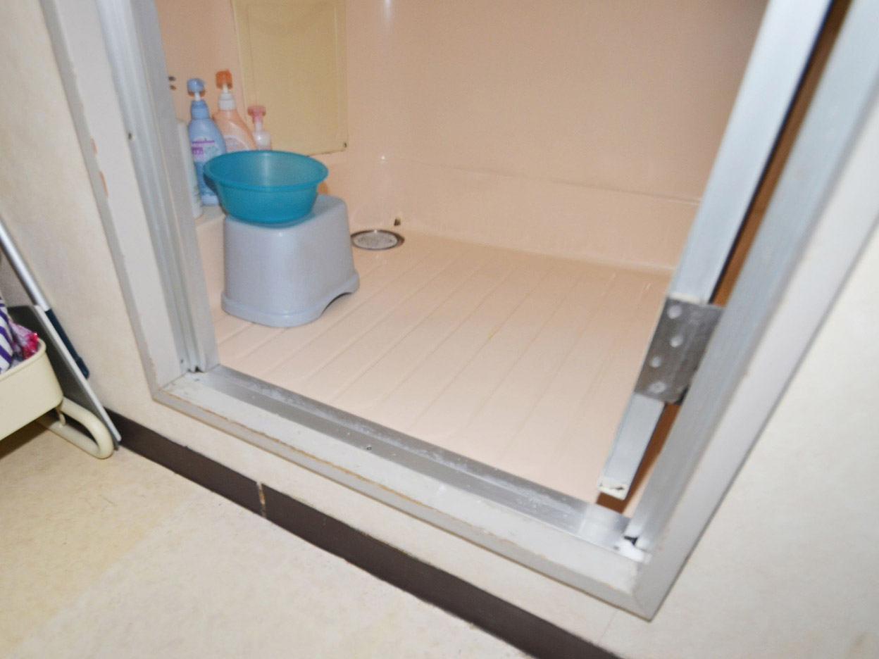・浴室の扉は開き戸で、出入口には約15cmの段差がありました。