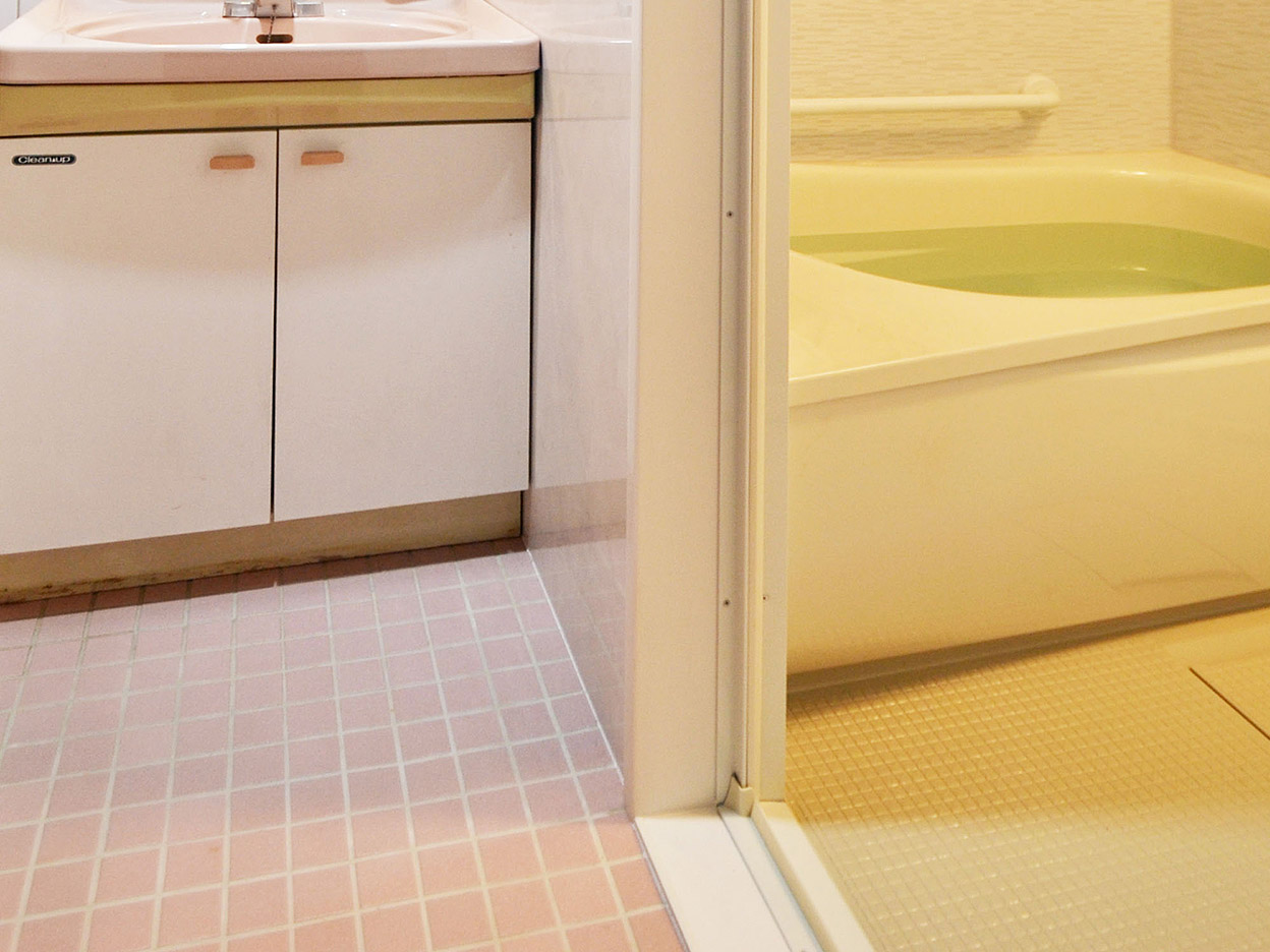 ・床はタイルに比べて滑りにくい素材の床を採用。
