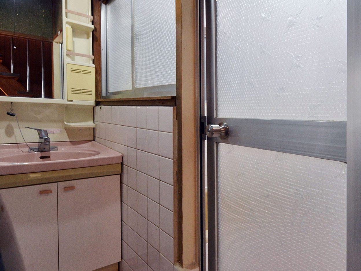 ・洗面所側の壁は水に強く、お手入れしやすいパネルばりにしました。