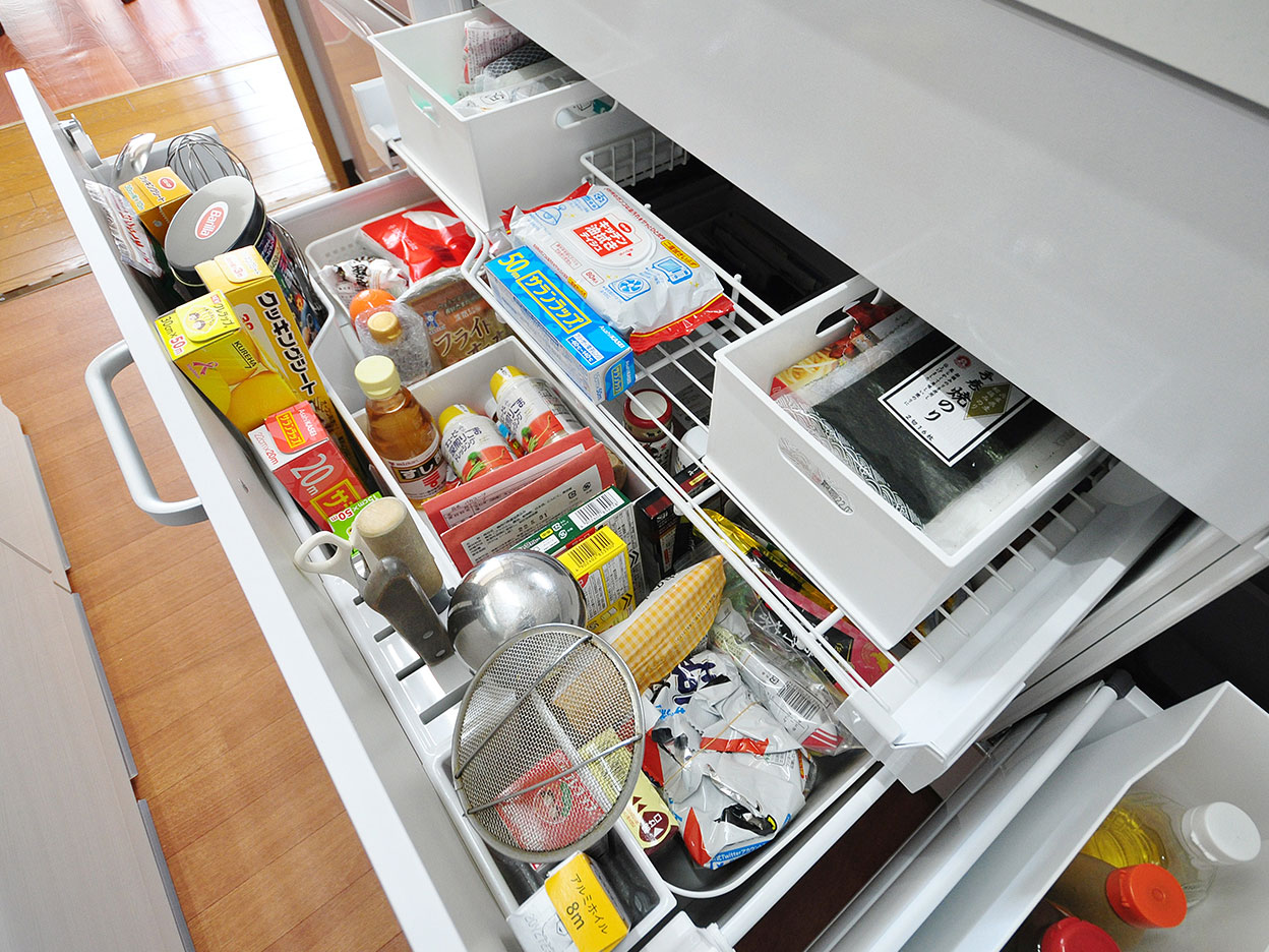 ・キッチンの収納が狭いうえに観音開きのため、奥の物を取り出しづらく感じていました。