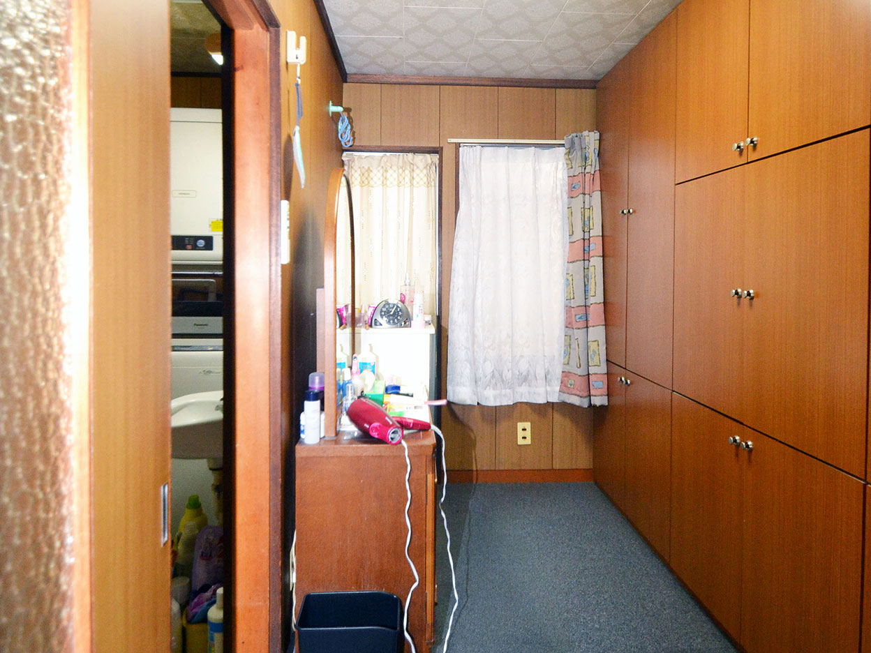 以前まではトイレへの通路も兼ねていた洗面室。今回のリフォームではスペースを確保し、新たに棚を設置したことで収納量がアップしました。