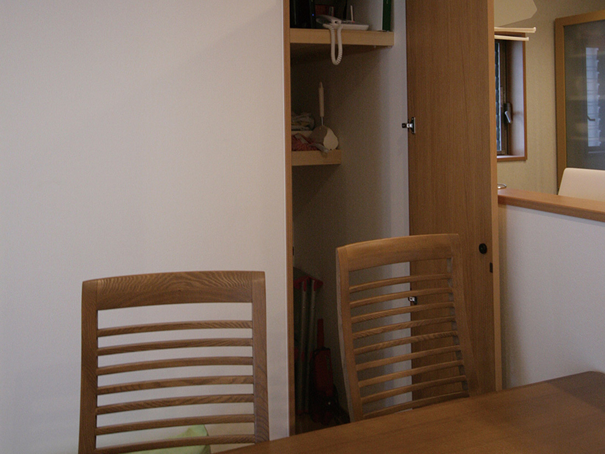 ・ダイニングテーブルの後ろには、小物類を収納できる便利な収納庫を設置しました。
