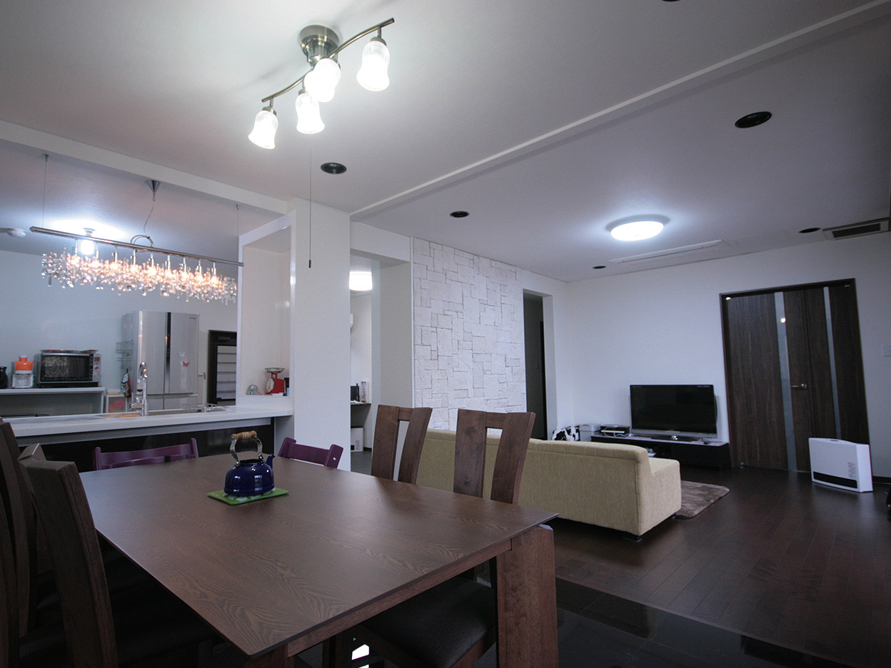 以前にお仕事させていただいたご縁で、今回のリフォームもご依頼いただきました。リフォームのコンセプトは「小さなお子さまがのびのびと感性豊かに育つ住まい」。石材を用いるなど、高級感を演出しながら生活感もある、飽きのこない住まいになったと思います。