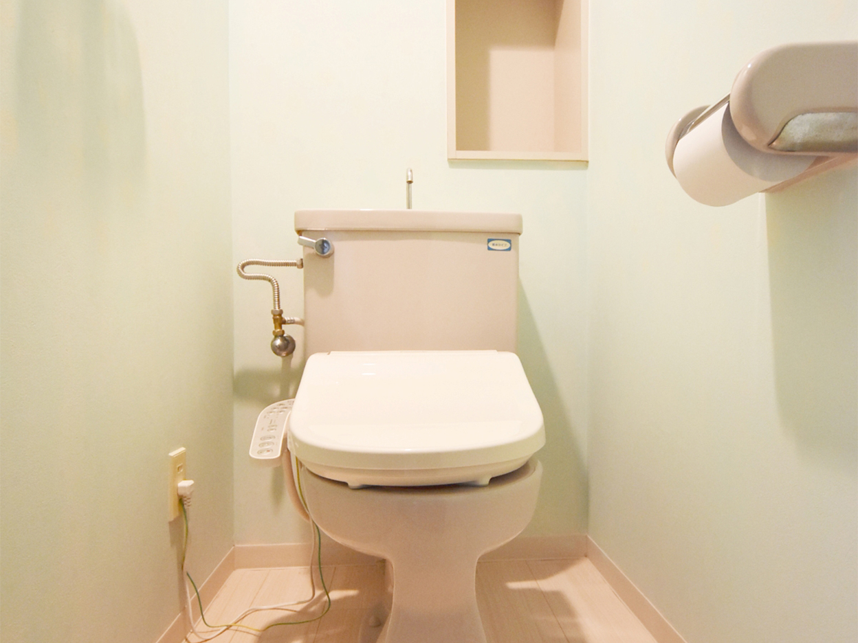 清潔に保たれているものの、トイレの便器は30年以上前のタイプでした。