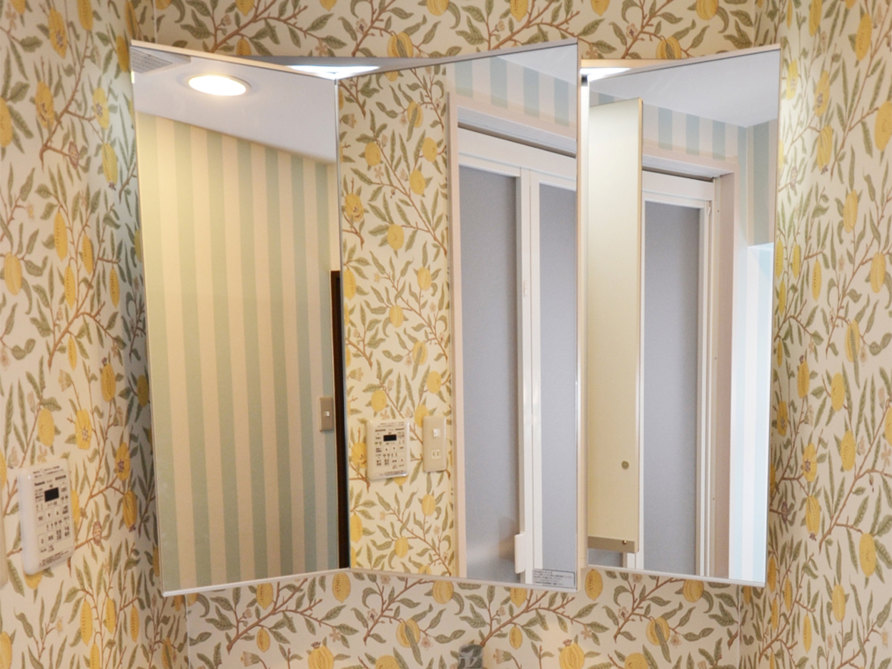 大きな三面鏡を備えた洗面化粧台は収納力と明るさが大きく向上しています。