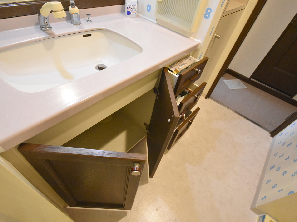 タオルや洗剤などが取り出しやすい引き出しタイプの収納です。