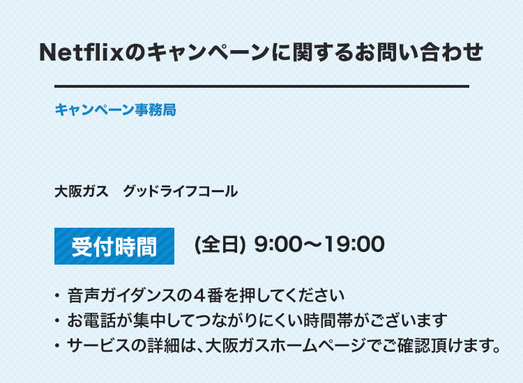 新生活応援プランをお申込みの方は大阪ガスが2ヶ月分のNetflix料金を負担!